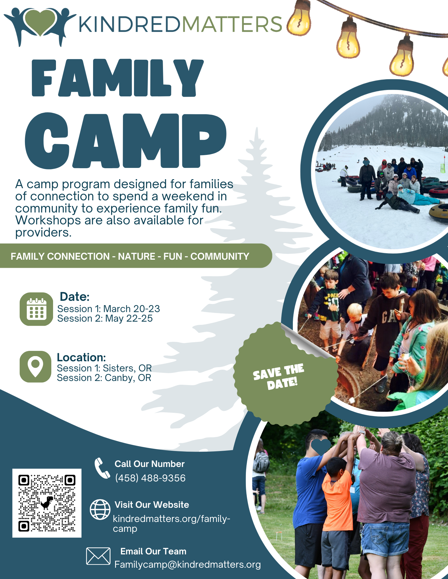 Applications for our 2026 Family Camp Sessions will open soon! To ensure you are the first to know follow us on social media or be sure to get added to our email list by contacting our Family Camp Registration Coordinator at familycamp@kindredmatters.org