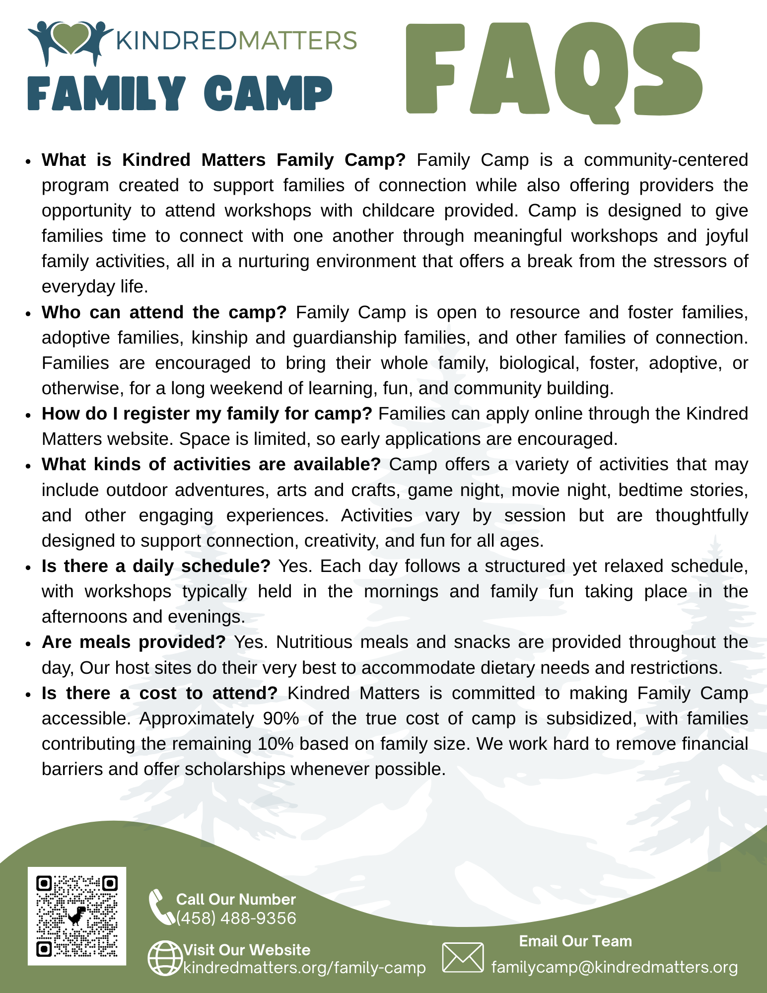 For more information about Family Camp, please contact tia@kindredmatters.org.